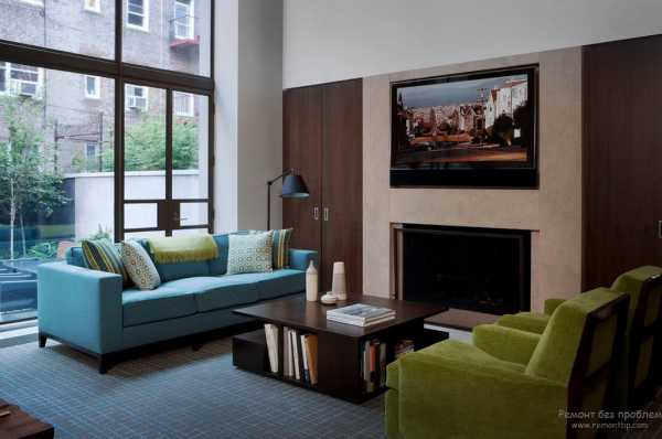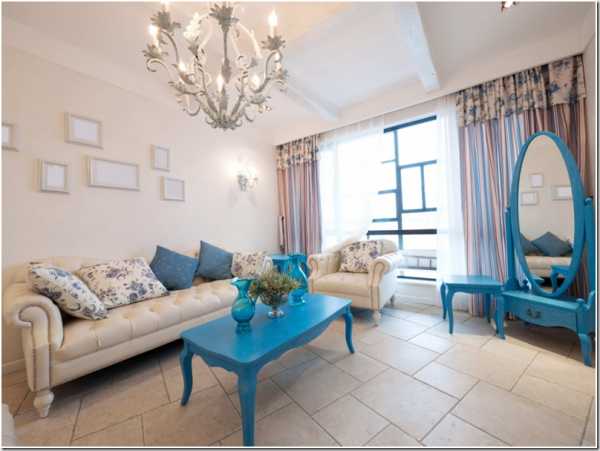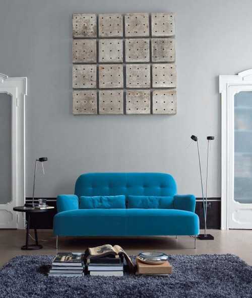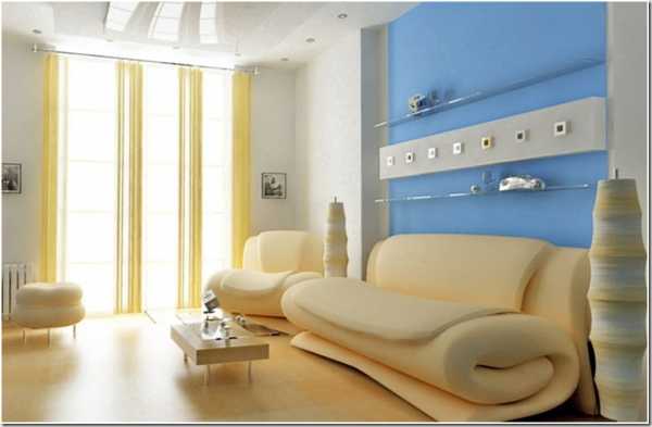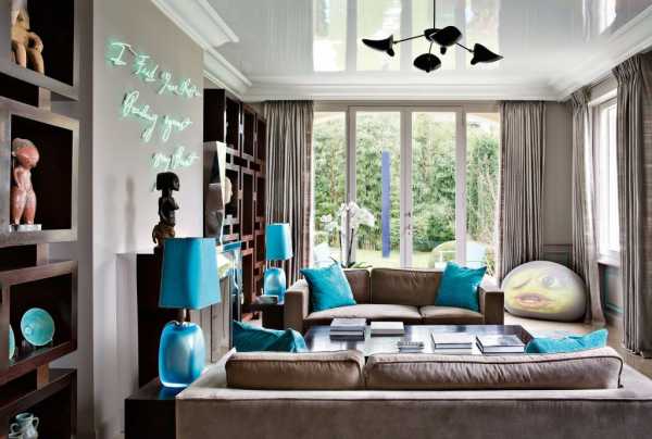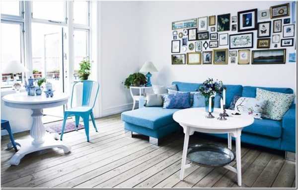 голубой цвет в интерьере гостиной
