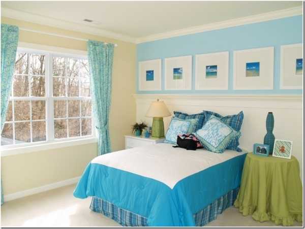 Голубой цвет улучшает качество сна, поэтому использование его оттенков в спальной комнате весьма уместно.