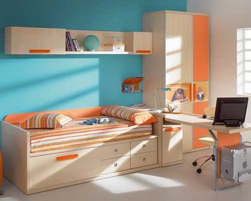 Сочетание: голубой и оранжевый в интерьере