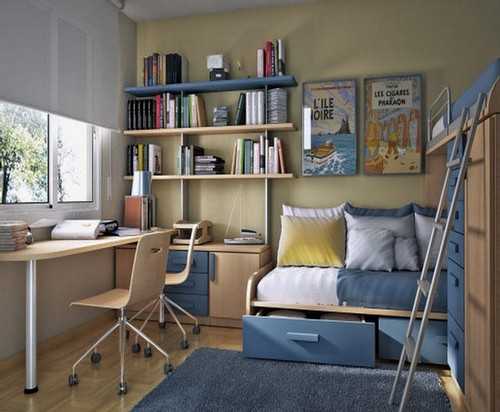 Синий цвет относится к холодным оттенкам, но интерьер комнаты выполненный в таком стиле не будет мрачным, ведь яркие и эксклюзивные детали дизайна придадут ему теплоты и мягкости.