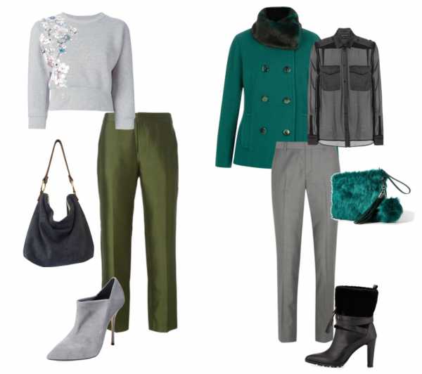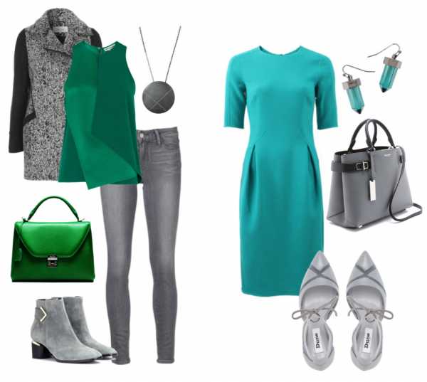 Попробуйте поэкспериментировать с подобным сочетанием и в повседневных нарядах. Серый отлично смотрится с бирюзовым, бутылочно-зелёным, сине-зелёным. Серыми аксессуарами можно снизить яркость наряда. А можно, наоборот, составить комплект в серых тонах, а зелёный использовать в качестве акцента, цветового пятна, притягивающего взгляд.