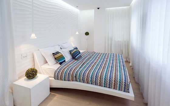 Белая спальня с яркими акцентами