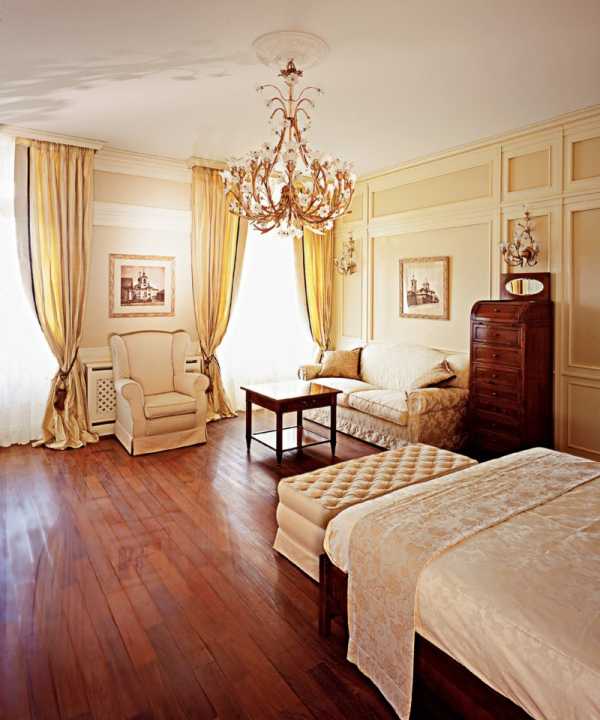 Как ранее упоминалось, полы в спальне английского типа выполняются только из дерева. Это может быть как паркет, так и покрытие из ценной древесины. В современном варианте возможно использование и ламината, но стоит подбирать только тот его тип, который имеет выраженную древесную фактуру.