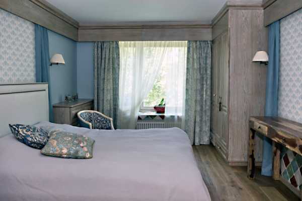 Спальное место также должно соответствовать стилистики комнаты, в первую очередь кровать должна быть высокой. Причем она должна не только стоять на высоких ножках, но и на ней нужно положить несколько перин. Также кровать можно дополнить балдахином.