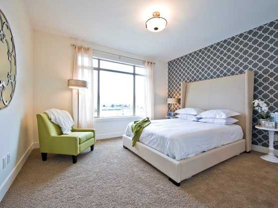 - визуальное изменение пропорций помещения. Редко встречаются идеально пропорциональные помещения, чаще всего они узкие или вытянутые. С помощью правильного подбора цвета и орнамента можно визуально скорректировать размеры спальни;