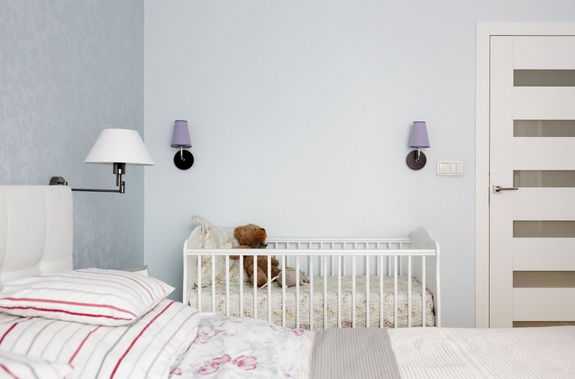 Родителям удобно, чтобы новорождённый спал с ними в одной комнате, а не отдельно в гостиной. Особенно если спальня просторная, нет проблем поставить кроватку рядом. Первые несколько лет малютка живёт с родителями.