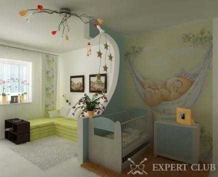 Учтите такие нюансы: ваш малыш скоро подрастёт и вы его переведёте в детскую. Спальня для малыша — временная детская комната. На несколько лет целесообразно это детское место в гостиной совместить, чтобы малютка был поближе к маме.