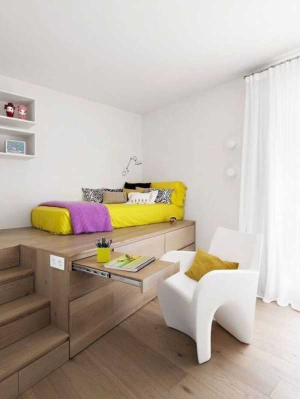 - Хорошо когда кроватка грудничка будет располагаться на подиуме, на виду у родителей, которые могут сразу определить его потребности. Такой же вариант подойдет и детям постарше.