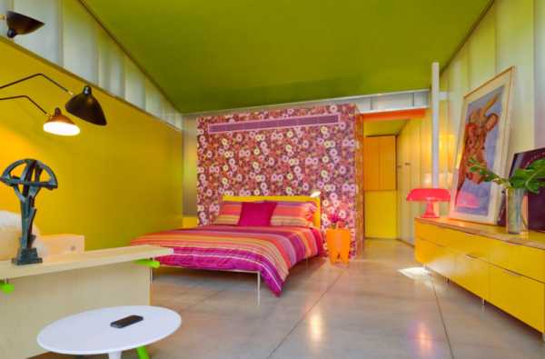 Такой дизайн спальни способен поднять настроение, и подарить жизнерадостность.