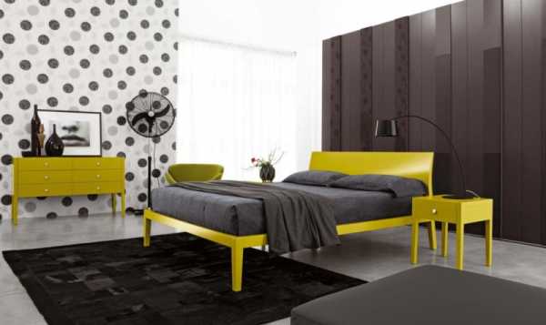 Этот цвет, пожалуй, самый живой, пестрый и бодрящий. Но для того, чтобы он не «резал глаза» и не вызывал излишнее возбуждение психики, его следует разбавить с светло-голубым или серым. Итак, стены у нас по-прежнему белые, может быть, и мебель тоже (все зависит от степени яркости, которую вы задумали для своей спальни).
