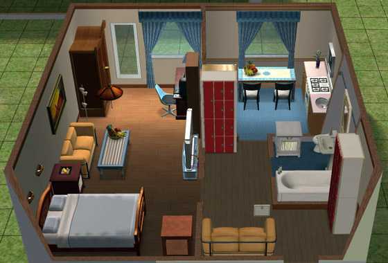 Если комната оформляется только для отдыха, не нужно вносить сюда много лишней мебели, а наличие предметов декора зависит от предпочтения хозяев. При создании рабочего места или зоны, где можно будет принять гостей, в интерьер вносится дополнительное оформление (освещение, перегородки, ширмы), а мебель подбирается с возможностью трансформации: диван превращается в кровать, журнальный столик — в полноценный обеденный стол.