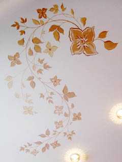 Чтобы расписать стену или потолок гризайлем, не обязательно приглашать художника. Есть трафареты для самодеятельного гризайля, в продаже и для скачивания. Попрактиковавшись на обрезке ГВЛ, по ним можно самому сделать вполне приличную роспись, см. рис. слева.