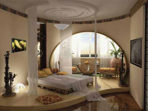 Органично впишется в общий интерьер комнаты и станет не только очень красивым, но и удобным решением. Таким способом обычно разделяют помещение при реконструкции под кабинет балкона. Арка, плавно переходящая в подоконный блок, по максимуму сохранит полезный метраж и предоставит еще одну свободную поверхность. Арочный проем можно оформить шторами, а установив раздвижную дверь, вы уже получите отдельную комнату под кабинет. Эта затея не из дешевых, но имеет свои преимущества. Комната всегда будет наполнена светом, площадь под кабинет не придется выкраивать, а его интерьер может быть исполнен в несколько ином стиле, нежели в спальне.