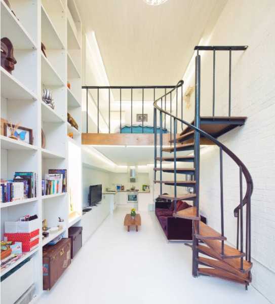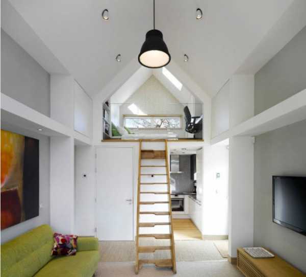 Для осуществления такой идеи нужно иметь достаточно высокие потолки и не бояться высоты. Смотреться такая конструкция в интерьере будет очень необычно и интригующе.
