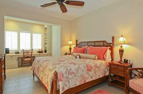 Если при обустройстве кабинета в спальне перед вами стоит задача сохранить целостность интерьера, выбирайте мебель для офисного островка под стать спальному гарнитуру.