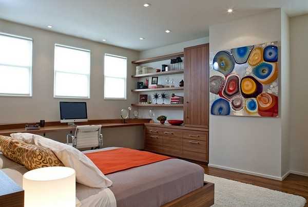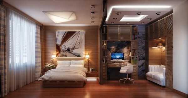 Дизайн спальни и рабочего кабинета в одной комнате фото