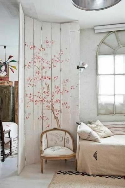 Зонирование спальни и кабинета ширмой
