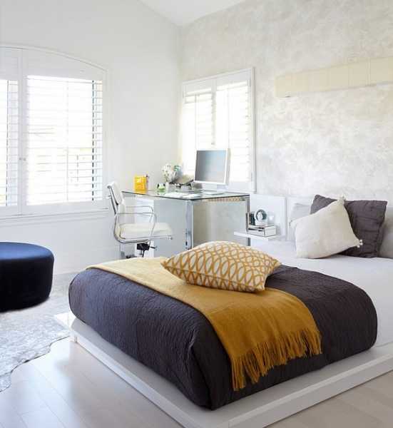 Спальня-кабинет – самый удачный вариант при организации рабочего уголка, который сможет как вдохновить на работу, так и расположить ко сну.