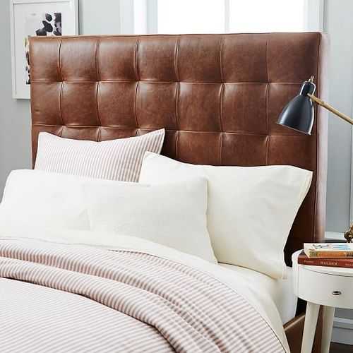 Кожаное изголовье является стильным вариантом. Некоторые люди предпочитают вариант из экокожи, поскольку он более бюджетный. Исходя от тиснений, окраски материала, подобные изголовья гармонично впишутся в любой интерьер.