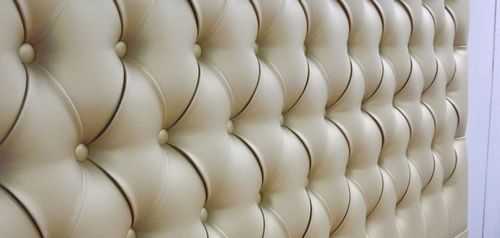 Как уже было сказано, такое простое изголовье несложно сделать буквально за пару часов. Для создания более презентабельного вида часто используют так называемую «Капитоне» — каретную обтяжку.