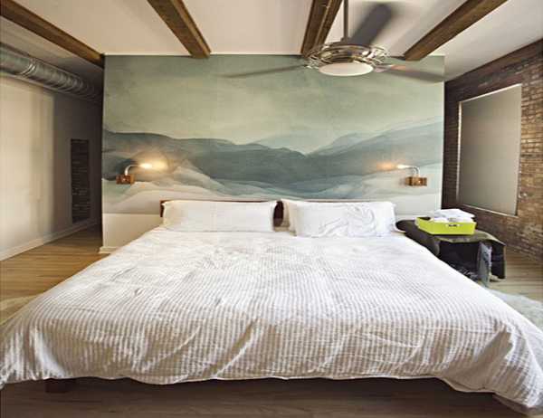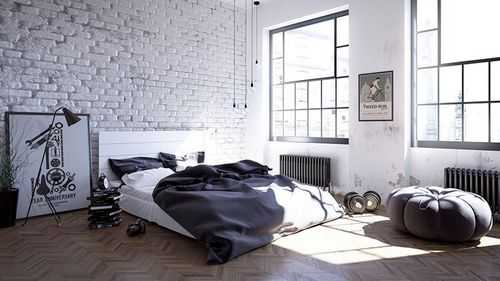 В таком помещении присутствует свобода и лаконичность, брутальность и простота. Интерьер в стиле Лофт одобряет грубую кирпичную кладку на стенах наряду с деревянным потолком и полом. В комнате должно присутствовать минимальное количество перегородок и мебели. Декор нужно использовать в небольшом количестве, но он обязательно должен присутствовать. Изголовье следует делать простым, без вычурности.