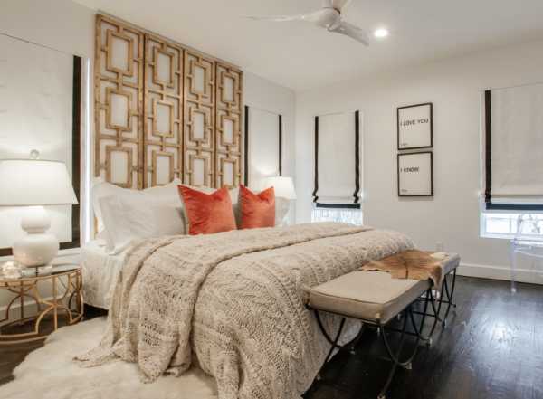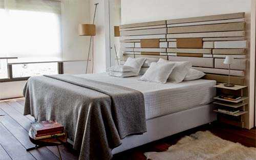 Подобные акценты должны обладать поддержкой в лице мебели, светильников, аксессуаров и прочих элементов интерьера, чтобы присутствовала гармоничность. Если же вы хотите сделать простое деревянное изголовье, например, из фанеры, такой вариант не нуждается в особой поддержке.