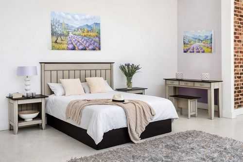 Такие помещения наделены романтикой, светом и уютом. Интерьер, оформленный в данном стиле, является стилизацией под старую французскую деревню. В ней присутствует большое количество ткани с цветочными изображениями, светлые цвета. В такой комнате будет смотреться деревянная мебель под старину. Для отделки изголовья можно использовать окрашенные доски либо двери старого образца. Можно прибегнуть к мягкому изголовью из светлой ткани с мелкими цветочками.