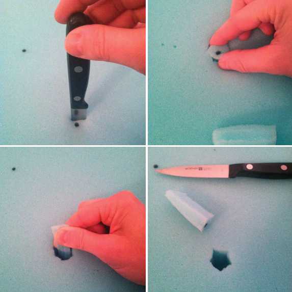 Тщательно закрепите поролон на доске, чтобы их отверстия совпали