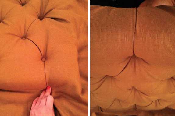 Разметка доскиВторой этап заключается в разметке под пуговицы. Существует два основных типа: алмазный и квадратный. Для того чтобы сделать алмазный тип, пуговицы располагаются в шахматном порядке, а для квадратного, как ясно из названия, строго по линейке.