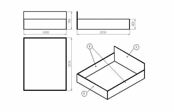 Схема кровати: 1 – изголовье, 2 – царги, 3 – изножье.