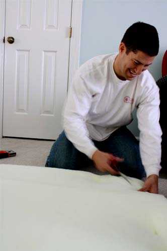 - поролон, толщина которого составляет 5 см. Его следует также подгонять под параметры выбранной фанеры;
