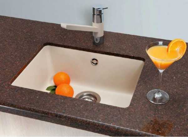Керамические модели имеют солидный дизайн, придают кухне особый лоск. Размеры чаши зависят от предпочтений хозяйки, габаритов гарнитура, количества чаш, дополнительного элемента для сушки посуды. Керамические модели имеют большой вес из-за толщины исходного материала.