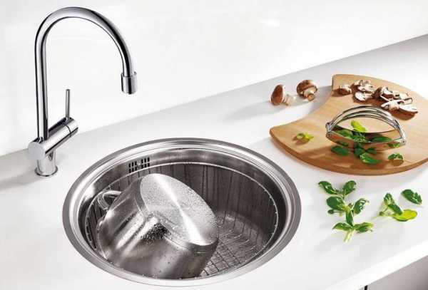 Круглые модели очень удобны в эксплуатации. Стандартный их диаметр составляет 45–51 см. Выпускают круглые мойки для кухонь и большего размера.