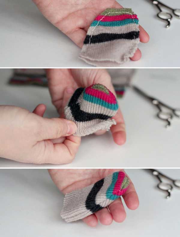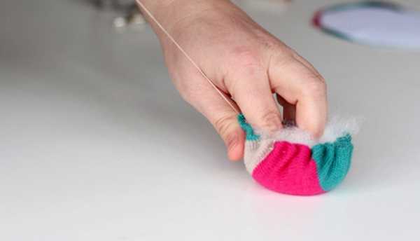 Делаем хвостик. Вырезав из свитера круг, наполняем его синтепоном,