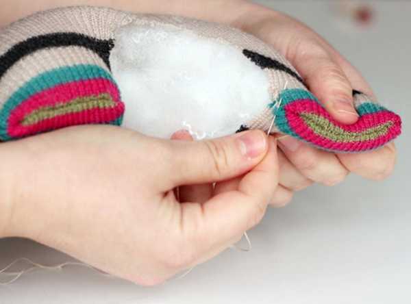 Наполняем получившуюся заготовку кролика синтепоном и зашиваем.