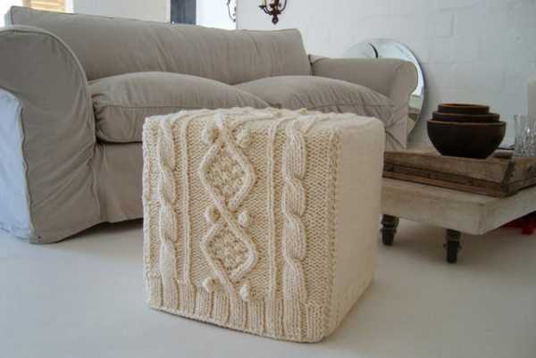 К тому же выглядят такие пуфы достаточно стильно. Самостоятельно их сшить несложно. Вам нужны только: ненужный свитер, плотная ткань для дна, ткань для внутреннего чехла, набивка, ножницы, игла и нити.