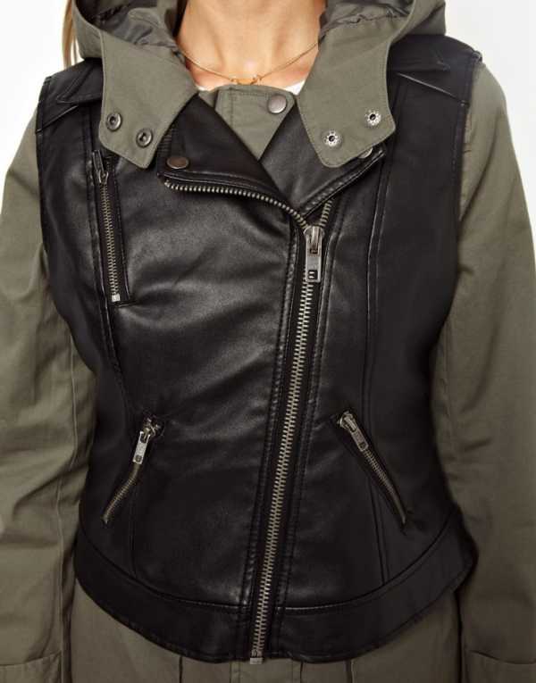 На закуску- еще пара быстро-идей: это печатный рисунок поверх куртки (можно воспользоваться трафаретом) и замена «псевдожилетика» настоящим, из косухи: его можно будет носить как под куртку, так и поверх парки: