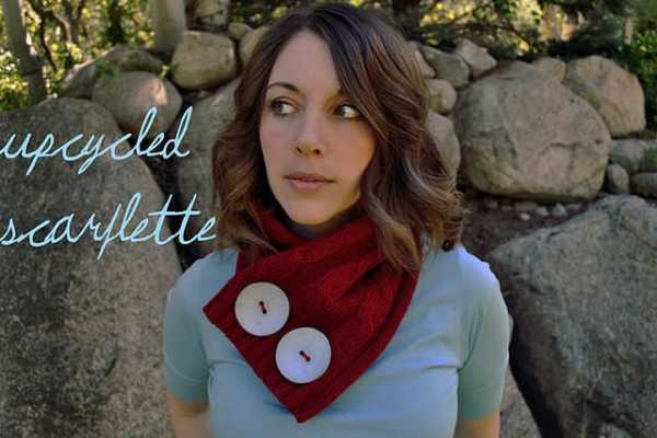Для девушек, которые любят красивые вязаные вещи, но не умеют вязать сами. Очень легко и просто можно создать скарфлет (короткая теплая повязка на шею) из старого свитера, который кое-где потерся, но выбросить жалко.