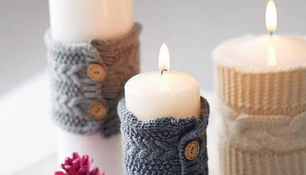 «Одежда» для свечей придаст вашему дому больше тепла и уюта. Особенно красиво может получится если свитер белый и свечи тоже белые.