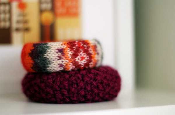 Из старого свитера легко сделать оригинальные аксессуары, обтянув крупные браслеты вязаным полотном