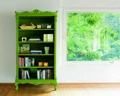 «Внутренность» стеллажа делают и зеркальной — в этом случае выставленные на полках предметы «раздваиваются». Помещение визуально углубляется. Важно не перегружать полки предметами, помня о том, что из-за зеркал их количество зрительно удваивается.