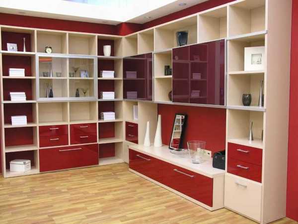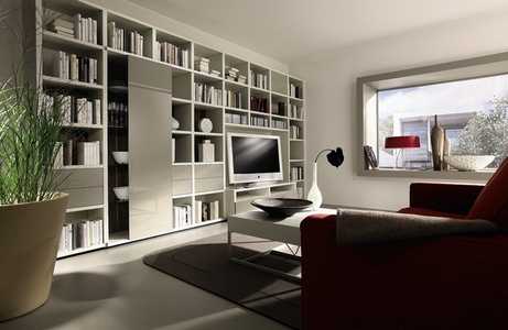 При этом полки в стеллажах разделены на секции, некоторые имеют закрывающиеся дверцы или закрываются при помощи стекла. В таких конструкциях может быть выделено место под телевизор. Чаще всего такую мебель располагают в спальной или гостиной комнатах.