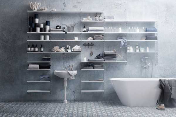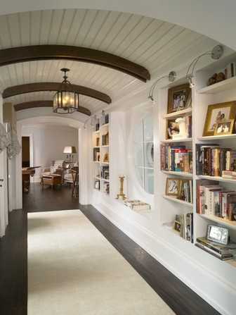 Стеллажи для дома часто размещают в узких пространствах — коридорах, санузлах. В интерьере коридора, узкого и длинного, может быть организована библиотека или небольшая экспозиция. Для этого используют либо череду отдельно висящих полок, либо цельный стеллаж, в том числе встроенный. В узком санузле стеллаж весьма удобен, но желательно снабдить несколько полок дверцами, чтобы хранить в них индивидуальные средства гигиены.