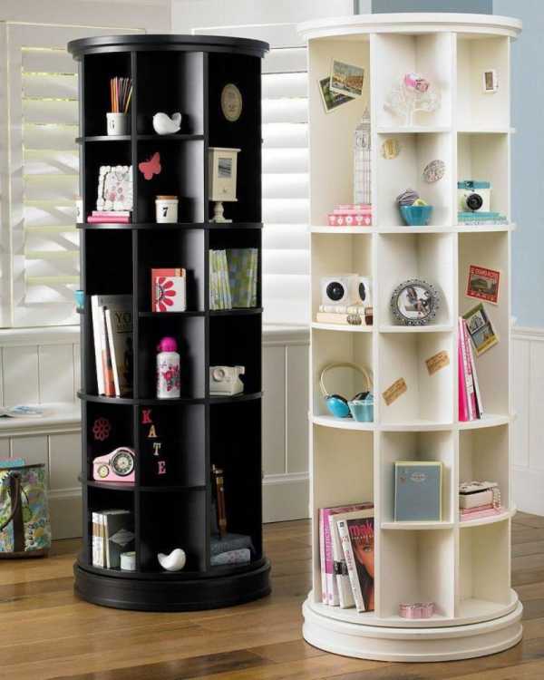 Сегодня, очень популярен стеллаж-цилиндр, делающий круговые движения по своей оси, используемый не только в торговой сети, но и теперь повсеместно.