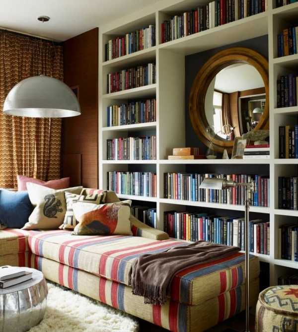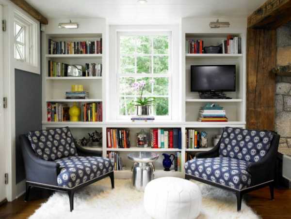 Для малогабаритных комнат это отличный способ сэкономить площадь. Стеллажи можно оформить окно, кабинет, заполнить нишу в мебели (стене).