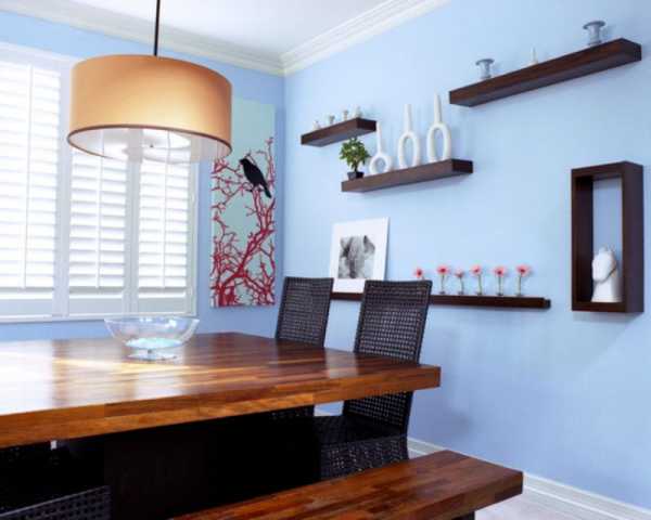 Что касается выбора цвета, то ему необходимо уделять пристальное внимание. Подбирая полки, для комнаты в своем доме, лучше всего добиться гармонии цветов внешнего интерьера стен и мебельного гарнитура.