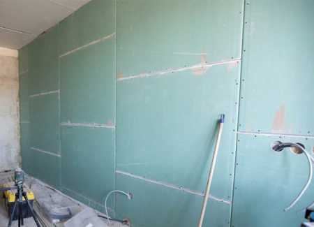 Для обшивки, конечно, потребуются листы гипсокартона. Чтобы стена была прочной и имела повышенный уровень звукоизоляции, обшивку лучше проводить в два слоя с обеих сторон установленного каркаса.