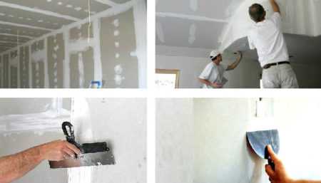 Когда стена смонтирована и все технологические приёмы учтены, приступают к отделочным работам. Прежде всего обрабатывают швы. Для этого применяют грунтовочный состав, шпатлёвку и серпянку (малярную ленту).