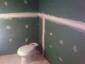 Стены из гипсокартона также имеют плюсы и минусы в отношении универсальности и практичности. Создавая из этого материала по каркасной технологии конструкцию, в ней можно без особого труда идеально скрыть элементы коммуникации. Трубы, проводка, вентиляционные каналы. Но опять-таки, при возникновении угрозы подтопления лучше использовать ГКЛВ листы. Они имеют отличительный признак – картон зеленого цвета.