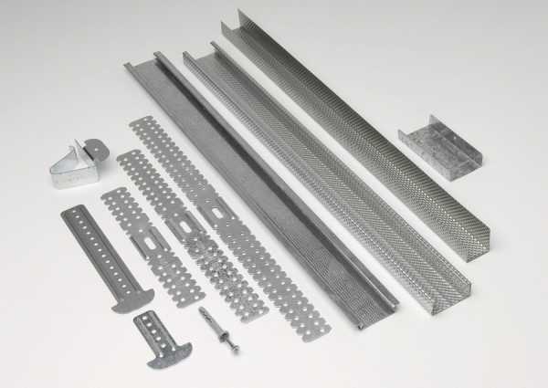 Основание конструкций стен обычно представляет металлический каркас из оцинкованных профилей. Распределяются они по типоразмерам. Одни виды профилей устанавливаются как направляющие, другие как элементы вертикальных стоек. Обозначаются также соответственно своему предназначению.